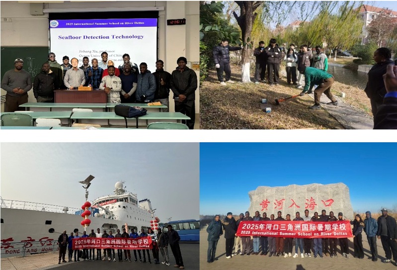 本期暑期学校为期三个月,共招收学员14名,包括教职人员5名和在读硕士研究生9名,他们分别来自尼日利亚阿库雷联邦理工大学、尼日利亚海洋学与海洋研究所、伊洛林夸拉州立理工学院等。本期暑期学校课程聚焦国际大河三角洲,授课内容包括理论教学、前沿技术训练与野外实践。在理论教学方面,开设了河口三角洲海洋动力、沉积地貌、地球化学、海洋空间规划等核心课程;技术实训环节则涵盖了无人机操作、遥感大数据处理及数值模拟等前沿技能;精心组织了“东方红3”科考船船载仪器认知、地球物理设备操作、黄河三角洲野外观测站参观、黄河入海口现场考察等实践活动;并围绕尼日尔河三角洲河道变迁、湿地演变、海洋动力时空变化等设计了科研训练环节;构建了“理论—技术—科研—实践—交流”的多层次授课内容。 暑期学校授课过程照片 (左上:理论授课;右上:设备操作;左下:参观东方红3;右下:黄河三角洲考察) 结课仪式上,与会嘉宾为全体学员颁发了结业证书,为期三个月的暑期学校在热烈的氛围中圆满结束。 结课仪式合影 本期河口三角洲国际暑期学校由中国海洋大学海洋地球科学学院组织教学,是依托“中尼河口三角洲联合实验室”开展的重要交流活动之一,不仅显著提升了学员的专业素养与实践能力,更为中国海洋大学与尼日利亚高校及科研机构在河口海岸领域的深度合作注入新动力,是深化“一带一路”科技创新合作的生动实践。 撰稿:许盼盼 审稿:孙友庆 乔璐璐