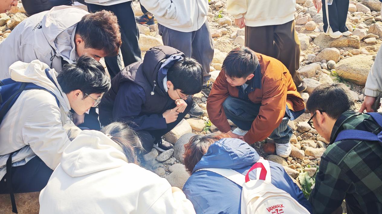3月30日,春风轻拂,阳光明媚,天朗气清,惠风和畅,中国海洋大学海洋地球科学学院2023级地质学班的同学们,在胡丽沙、王爱美、葛春海三位老师的带领下,赴青岛市白沙河开启了一场别开生面的岩石学课程实习之旅。这不仅是一次走出教室、亲近自然的实践活动,更是同学们将理论知识与实践技能紧密结合的宝贵契机。
