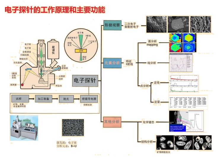 电子探针显微分析仪(Electron Probe Microanalysis-EPMA),是利用高能汇聚电子束作为激发源轰击固态样品表面,并利用由此产生的各种电子信号和X射线进行样品形貌、矿物内部结构与成分的测试。在地质学研究中,电子探针是显微结构和微区地球化学研究最核心最基础的分析仪器,同时也在高校、科研单位及工厂的不同实验室得到广泛应用。
