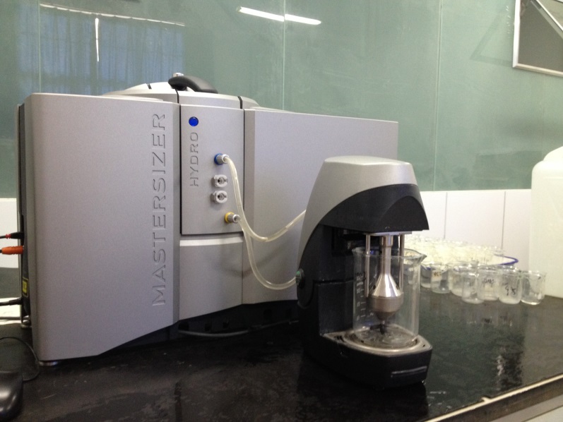 实验室建筑面积120 m2,主要仪器设备有激光粒度分析仪(MS2000、MS3000,英国马尔文;LT3600,珠海真理光学)、电子天平、振筛机、抽滤装置等。