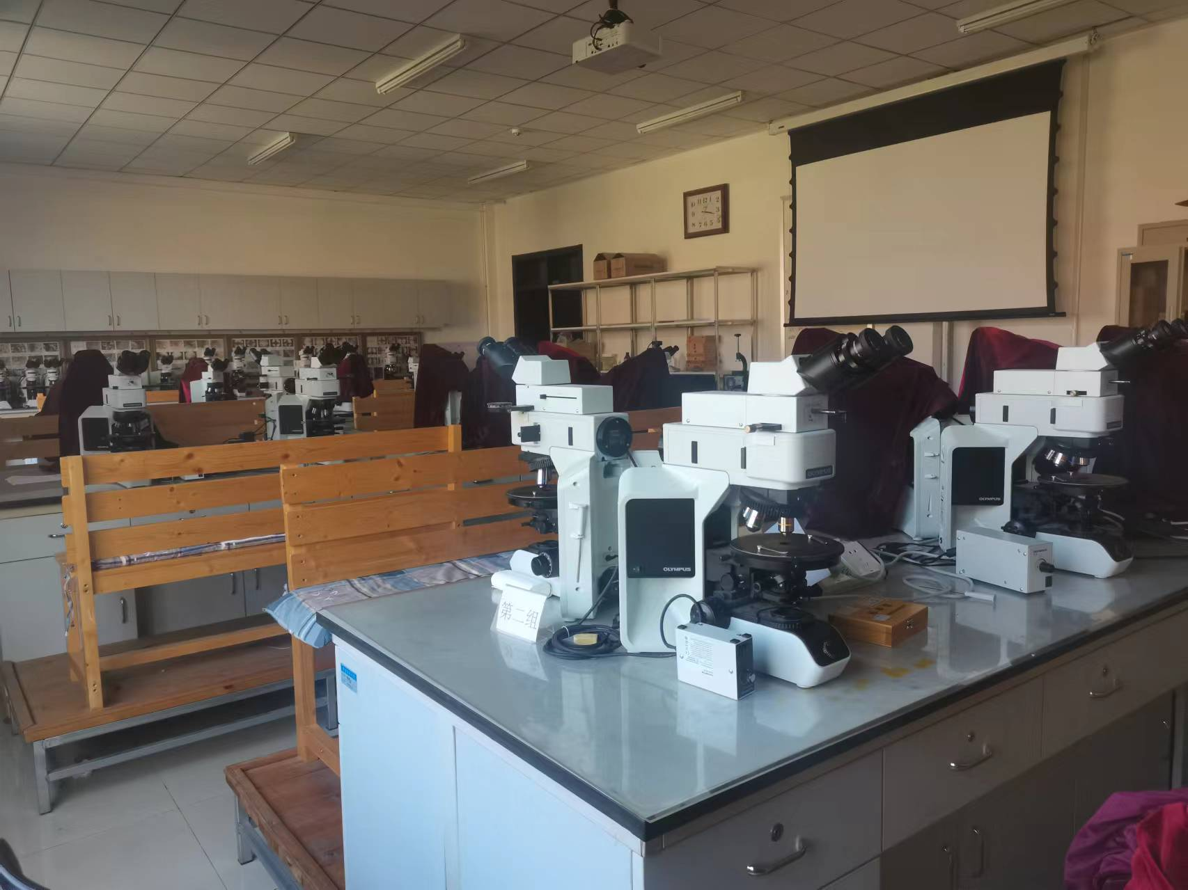 偏光显微镜实验室是基础地质实验室之一,主要承担晶体光学、岩石学(上)、岩石学(下)、岩矿鉴定等实验教学和地质技能竞赛中的标本鉴定环节。利用偏光显微镜,运用晶体光学的基本原理和方法,研究和鉴定组成地球的主要物质成分一造岩矿物,是地质学一种最基本和最广泛应用的方法和手段。岩矿鉴定是地质学专业学生必不可少的一门必修专业基础课,也是每个地质学者都应该掌握和具备的地学基础技能。