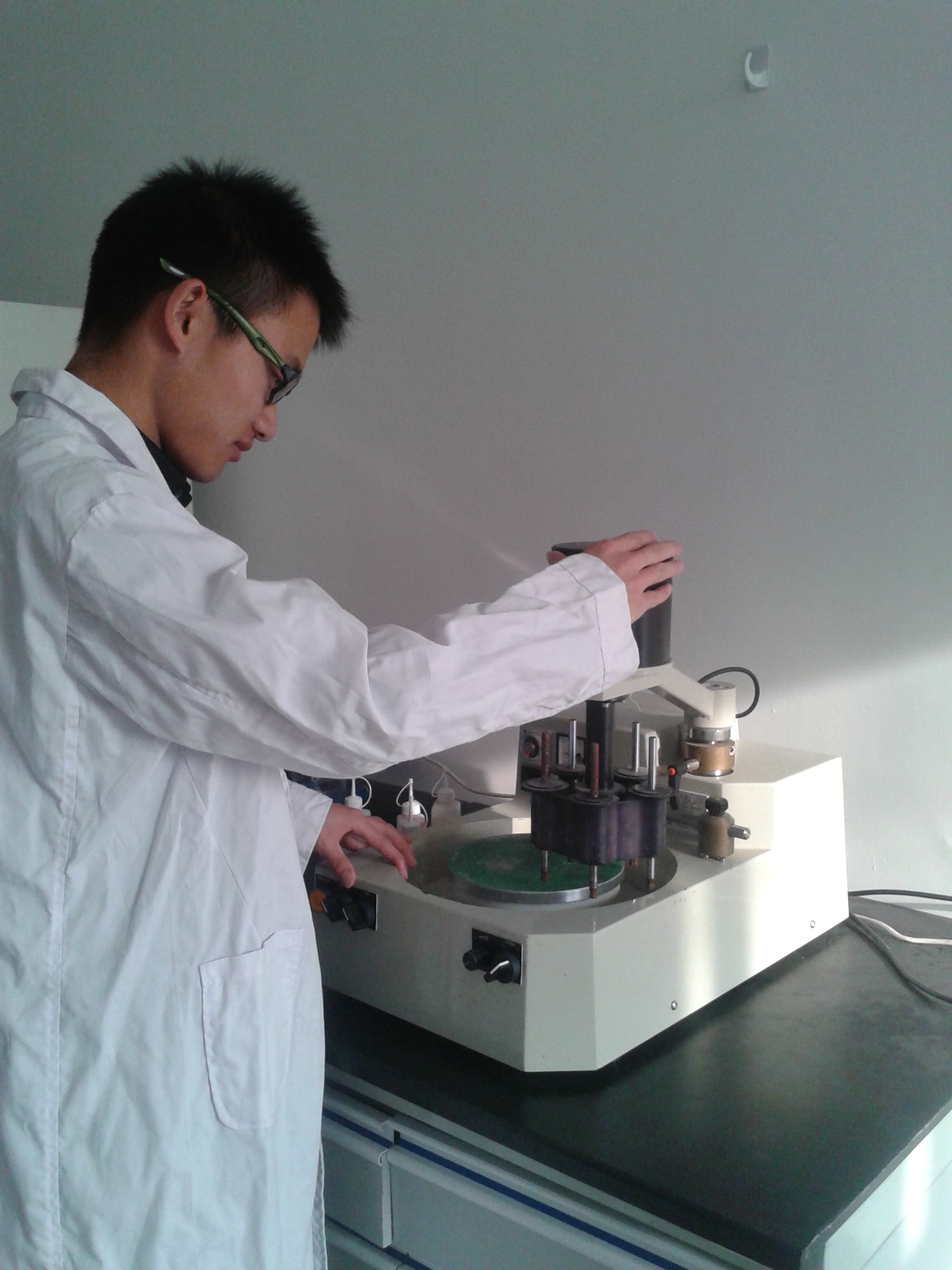 本实验室使用面积22平方米,现有的设备:1、姜堰新宇CF型切割机一台;2、姜堰新宇SMJ-1型磨片机一台;3、姜堰新宇MPG-4磨石机一台;4、姜堰星光XGQP-250切片机一台;5、姜堰星光XGOG-250磨片机一台;6、岩石粉碎机一台;7、电热鼓风干燥箱一台。