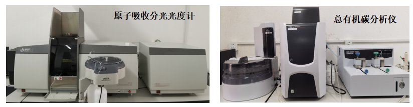 实验室使用面积42平方米,目前拥有的仪器设备有:台式偏振X射线荧光光谱仪(SPECTRO XPOS型,2台);总有机碳分析仪(岛津TOC-L型,1台);原子吸收分光光度计(普析A3AFG-12型,1台)。可开展沉积物、岩石、土壤及水体样品中无机、有机元素含量的测试分析。