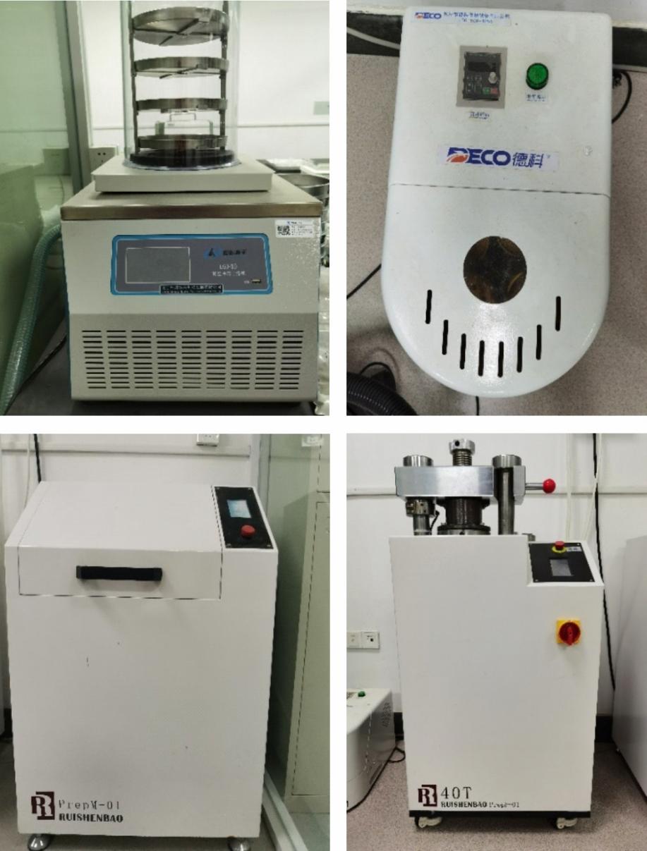 主要仪器有:研磨机、压片机、熔样机、冷冻干燥机、球磨机、电子天平、烘箱、生化培养箱、有机碳分析仪、元素分析仪。